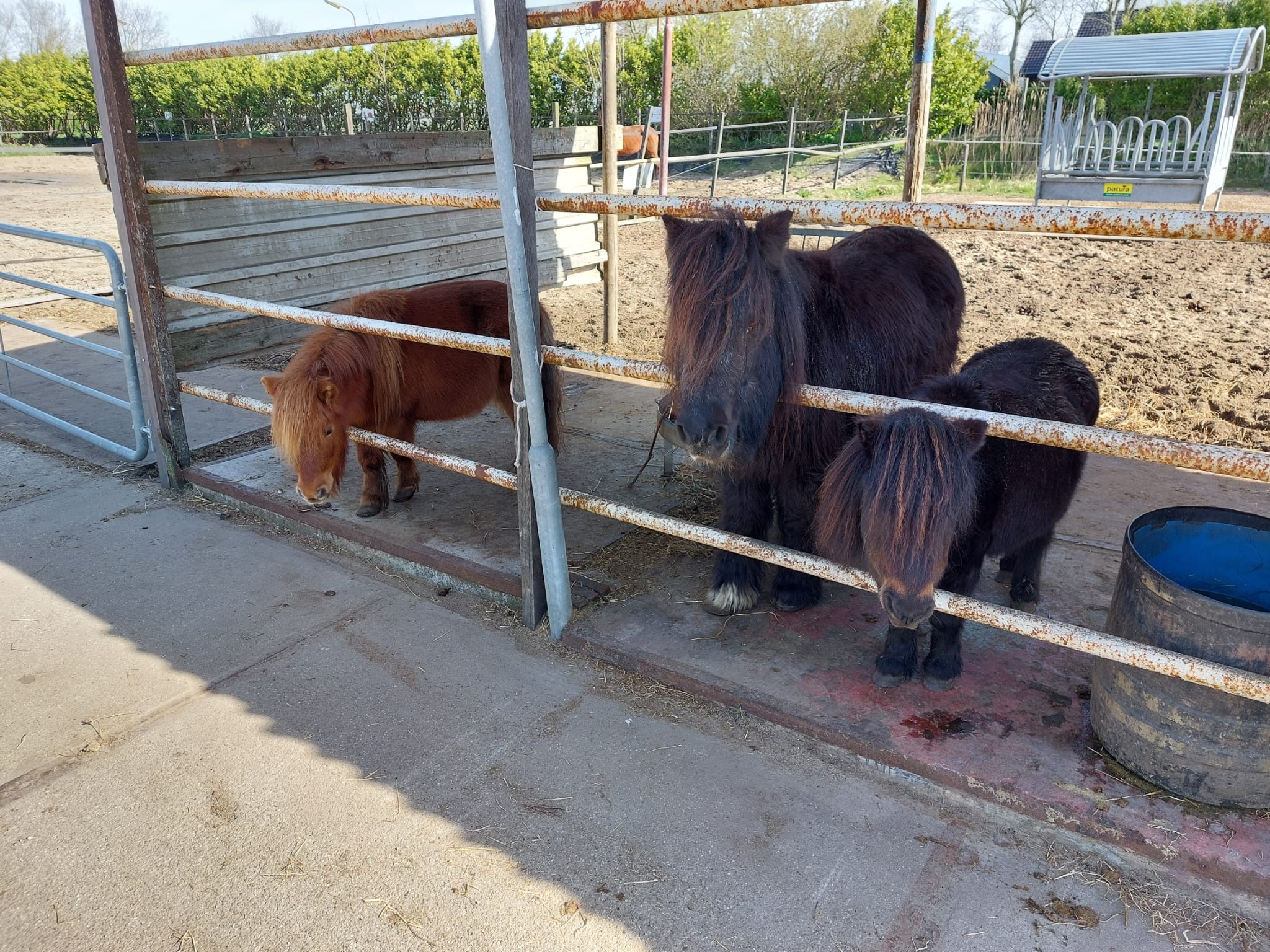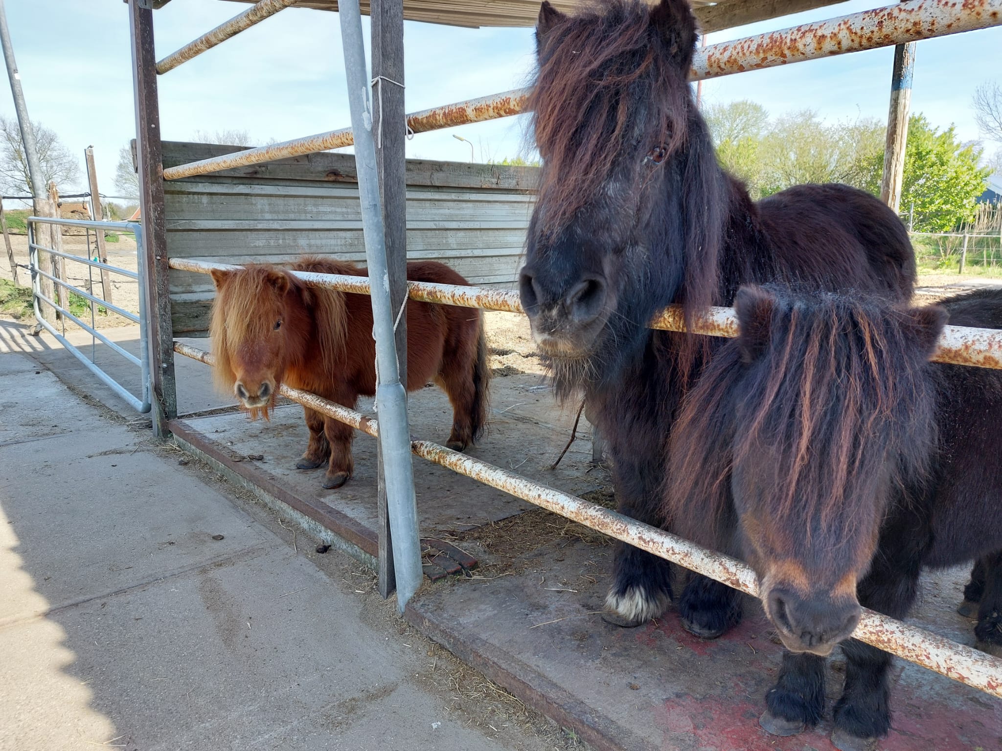Jullie hebben ze vast wel zien staan: drie leuke pony’s in de paddock. Tijd om ze even voor te stellen: Champ is de kleine roodbruine, A felly is de grote bruine met een klein wit sokje en Eefje de kleine bruine. Ze zijn dol op knuffelen, dus geef ze gerust aandacht.